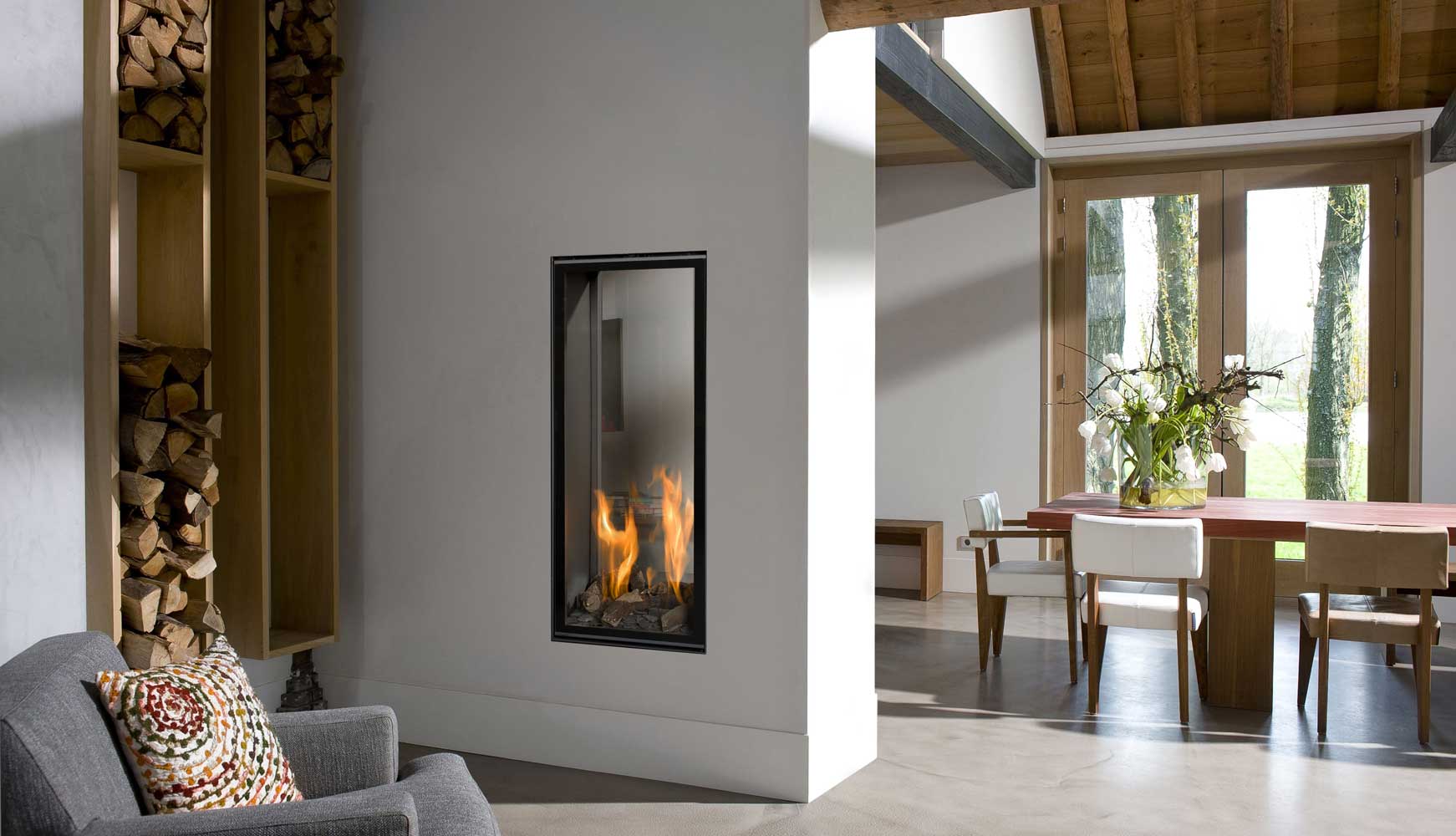 Užitek in romantika ob igri plamenov s pritiskom na gumb? Plinski kamini omogočajo prav to in so idealna izbira za tiste, ki ob modernem dinamičnem načinu življenja nimajo časa za pripravo drv in kurjenje. Primerni so tudi za mestna središča in objekte, kjer je oteženo ali onemogočeno shranjevanje drv za kamin. Ali pa za tiste, ki enostavno ne želijo imeti opravka z drvmi in »umazanijo«, ki pri tem nastane.